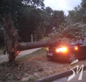 На вулиці 1 Травня чернігівці поширили фото вирваного з корінням дерева, яке упало на автомобіль