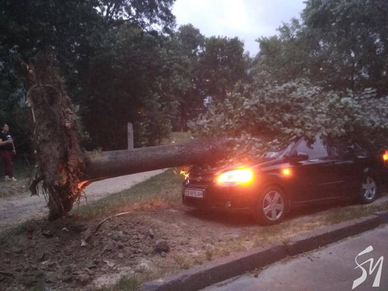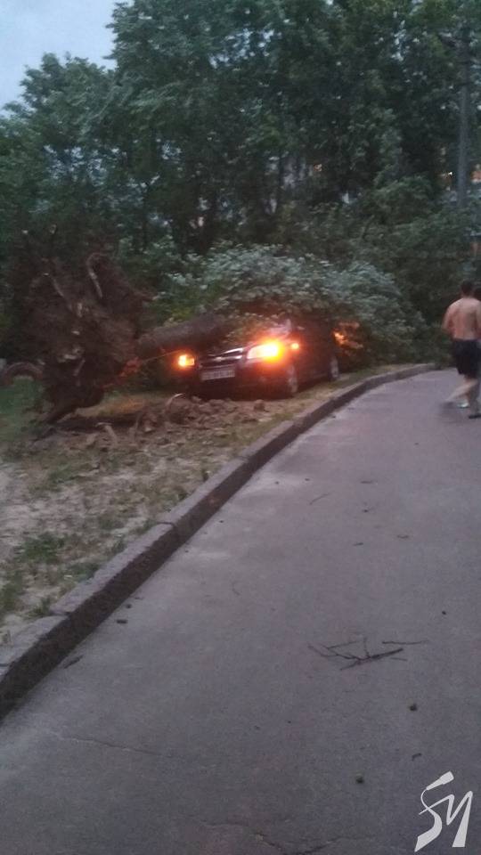 На вулиці 1 Травня чернігівці поширили фото вирваного з корінням дерева, яке упало на автомобіль