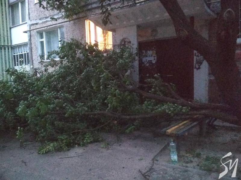 В іншому випадку зламана абрикоса перекрила вхід до під’їзду.