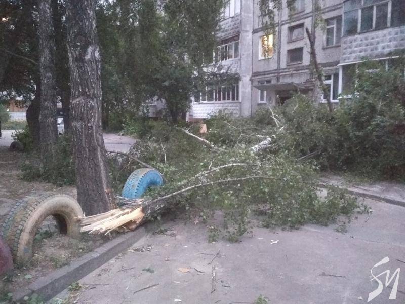 Не витримали сильних поривів вітру і берези. З вулиці Бєлова повідомляють про велику гілку, що упала поблизу дитячого майданчика.