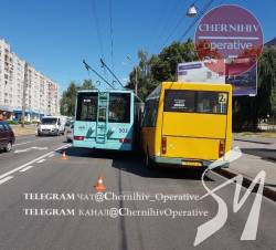 Сьогодні, 3 липня, на проспекті Миру біля готелю Градецький сталося ДТП за участі маршрутки №2а та тролейбуса з бортовим номером 503.