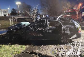 Як сказано в повідомленні поліції, водій Chevrolet не обрав безпечну швидкість руху, скоїв наїзд на пішохідну огорожу, після чого машина перекинулася і впала в річку Остер.