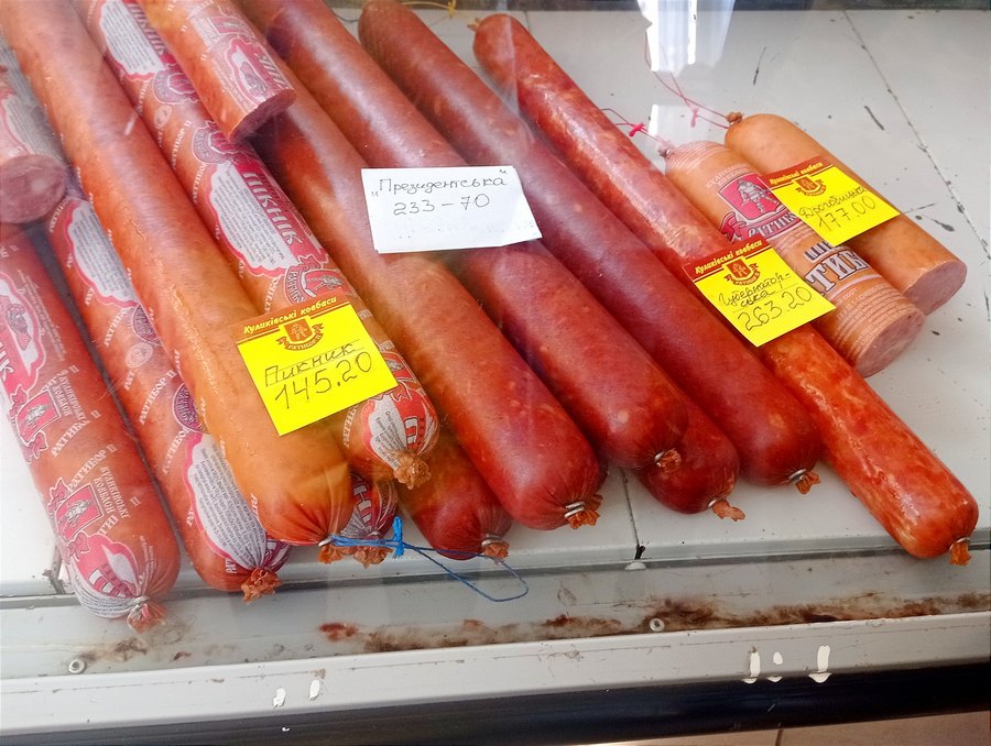 Широкий асортимент м'ясної продукції, від свіжого м'яса до ковбасних виробів має маркування ціни. Також продавці відпускають продукцію згідно встановлених норм.