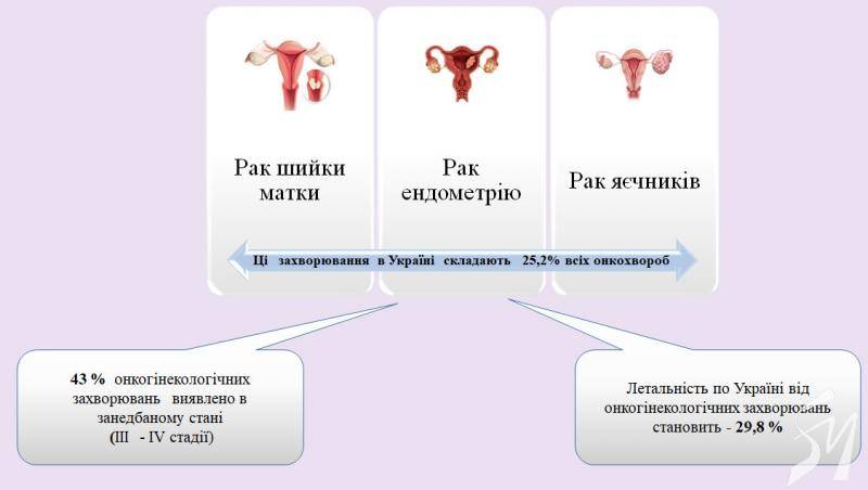 За офіційною статистикою, онкогінекологічні захворювання – рак шийки матки, ендометрію та яєчників – займають 25,2% усіх онкологічних хвороб в Україні. Ще більш драматично виглядає ситуація, якщо подивитися на стадії, на яких виявляють хворобу: майже 43% випадків діагностуються вже на III–IV стадіях, коли лікування є складнішим, а шанс на одужання – нижчий.