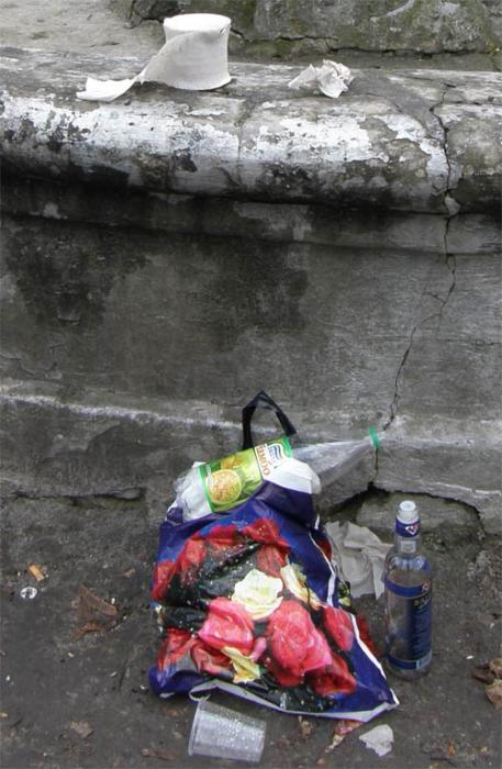 Коли дивишся очима фотографа на те, що діється навколо, здається, що потрапив у якусь загиблу цивілізацію. Скрізь ознаки занепаду і якогось запустіння. І тільки пластикові стаканчики, кульок з пляшкою і закуссю та «банка» туалетного паперу нагадує, що цивілізація іще не вмерла, а «розвивається».