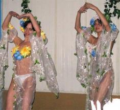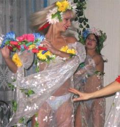 Учасники семінару їли суп та котлети, коли перед ними випурхнули…. Майже голі дівчата мали показати щирих українок. Танцювали під народні пісні. Спочатку купальські, потім весільні.