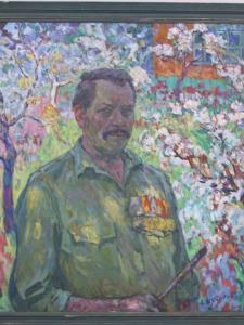 Це картини військової тематики. Зокрема «Мати чекає солдат з війни», портрет у військовий формі.