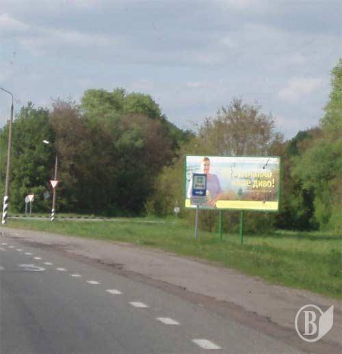 Мабуть, такий біг-борд придумав «спеціаліст» і передбачив, що кожен водій, як біля криниці, буде зупинятися і читати, а що то там написано? І чому на фоні біг-борда зображено знак ліжка, тобто готельних послуг?
