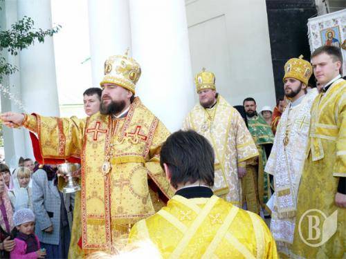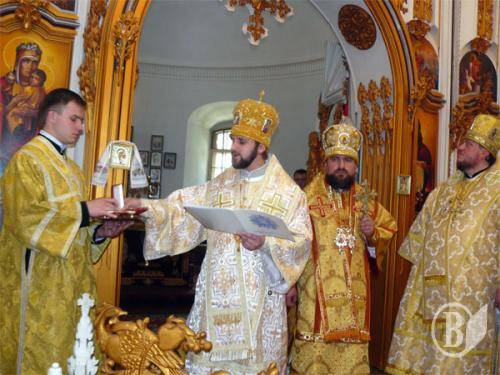 Архиерейскую литургию возглавил архиепископ Переяслав-Хмельницкий Димитрий, наместник Михайловского Золотоверхого монастыря, в сослужинни епископов Дрогобычского и Самбирского Матфея, Черниговского и Нежинского Иллариона и 12 священников из Нежина, Киева, Чернигова, Сум и Семёновки.
