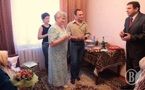 Владимир Хоменко передал юбилярше приветствия от Президента Украины Виктора Ющенко, вручил цветы и подарок, пожелал здоровья, радости в детях, внуках и правнуках.