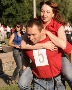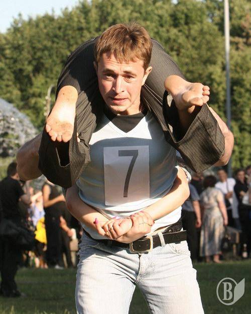 Минимальный разрешенный вес жены – 49кг. Длина дистанции 253,5 метра.