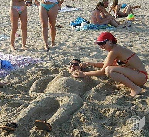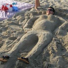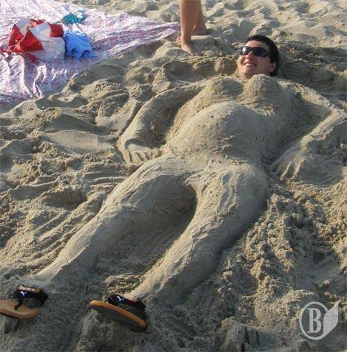 Кстати, рядом, в 40 метрах от этих скульпторов, отдыхал парень-транссексуал. Шутники об этом не знали.