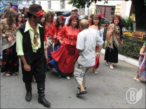 Пока колонна идет по площади, находится около десятка любителей наливки. Верка отстает от своих. За молодежью идут дружки, сваты, цыгане и свидетели. Цыганки ворожат, свидетели поют свадебные песни.