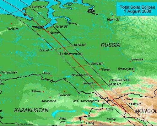 Сонячне затемнення можна було спостерігати сьогодні близько 13 години на Чернігівщині. Щоправда, лише часткове. Повне сонячне затемнення могли спостерігати жителі північної Канади, західного Сибіру, Монголії та Китаю.