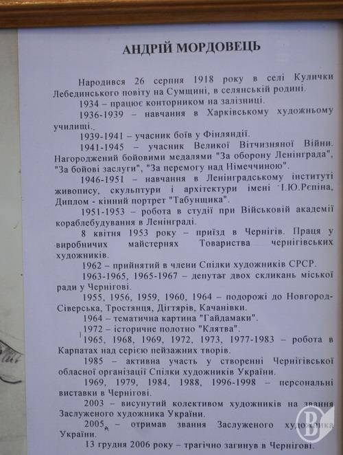 Художественная выставка памяти Андрея Мордовца длится в выставочном зале Черниговского областного отделения Союза художников Украины.