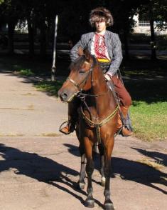 - Слава Богу, містечко маленьке, не багато суєти. Я живу у квартирі у центрі, але дуже хочу переїхати на околицю і завести конячку. На балконі ж я її не поставлю… і взагалі місце потрібне. Я шию збрую для коней, цим підробляю у період коли нема запрошень. Бо постійну роботу з кіньми знайти у Чернігові не можу. То у квартирі з цим теж є проблеми: починаєш пиляти, стукати – сусіди жаліються. Та й майстерню я влаштував у кімнаті маленької донечки, бо тісно, місця мало.