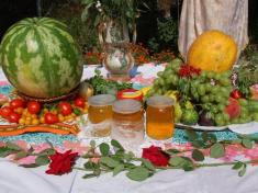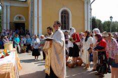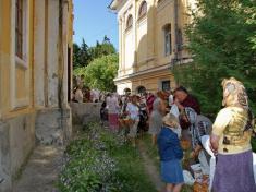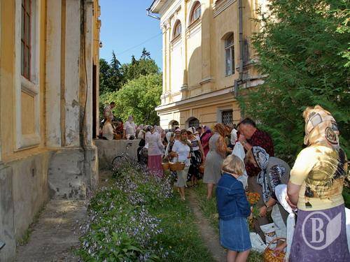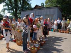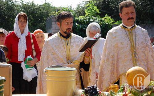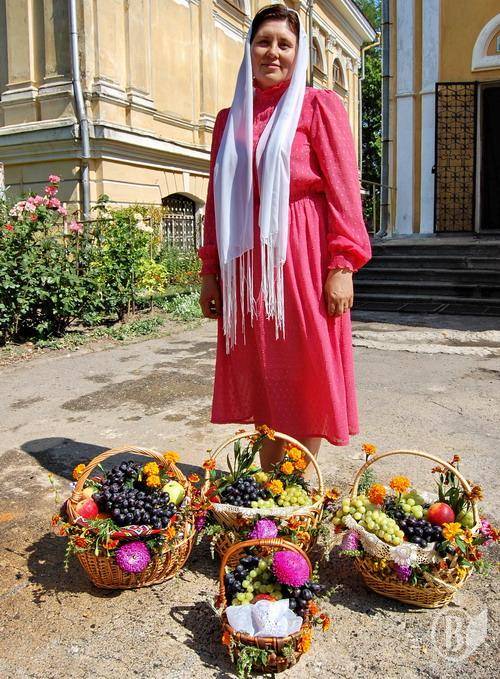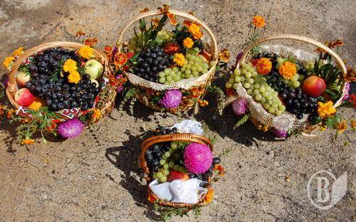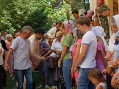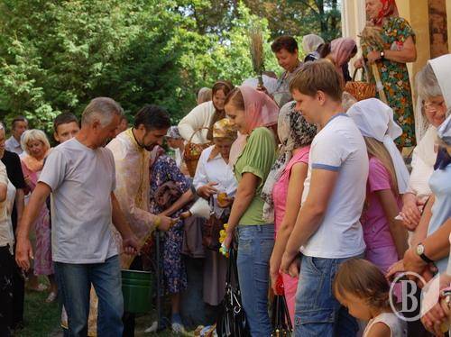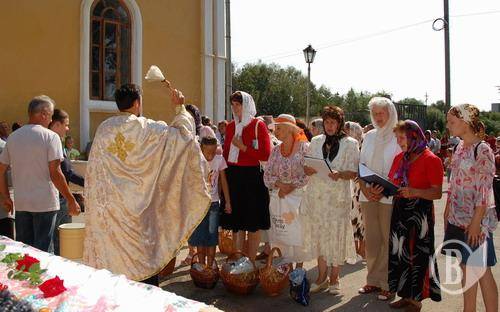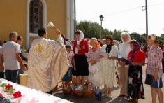 Около храма собралась больше тысячи мирян с красиво украшенными корзинами яблок, груш, винограда, овощей и мёда, которые освящались священниками, обрызгивались свячёной водой.