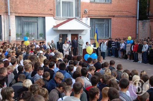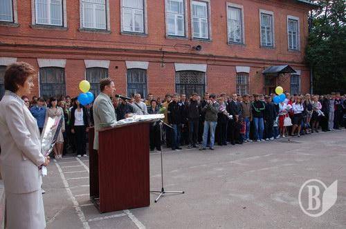 Открыл торжественную линейку директор лицея, прежний выпускник этого училища, почётный железнодорожник, заслуженный работник образования, кавалер медали А.Макаренко, Вячеслав Григорьевич Зеленский.