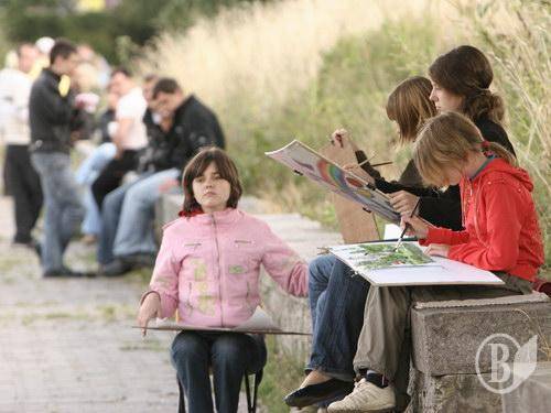 Две недели будет длиться учебная практика рисования с натуры. Увидеть юных художниц можно на берегу реки Стержень.