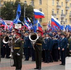 Флаги и флажки, воздушные шарики и шары, генералы и курсанты, ветераны и школьники, яркий красный и военный зелёный цвета можно было увидеть сегодня в центре русского Брянска, который открыл свой день уже традиционным парадом, который стал «парадом поколений».