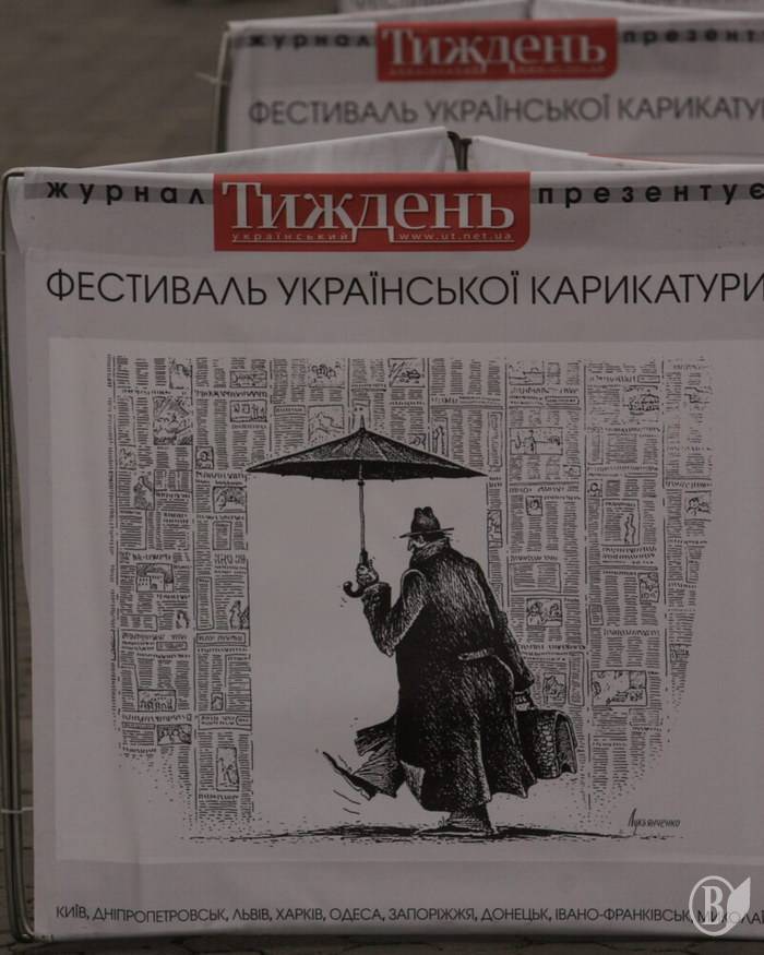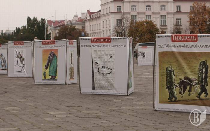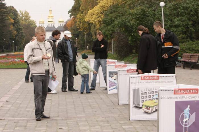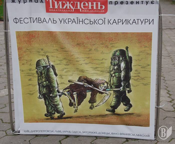 Передвижная выставка украинской карикатуры посетила Чернигов. Она была выставлена на стендах на Аллее Героев для ознакомления и обзора жителей и гостей города.