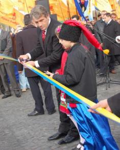 Вокруг изобиловали государственные флаги и "Нашей Украины", представителей делегаций, которые прибыли из многих регионов области на открытие Музея.