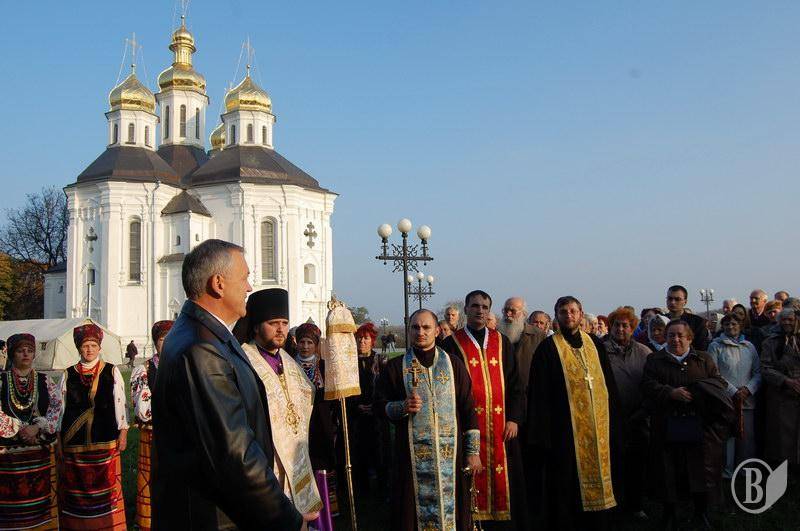 В день Покровы черниговцы отметили память борцов за свободу Украины около камня, который рядом с Катерининской, казацкой церковью Киевского патриархата.