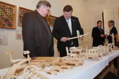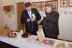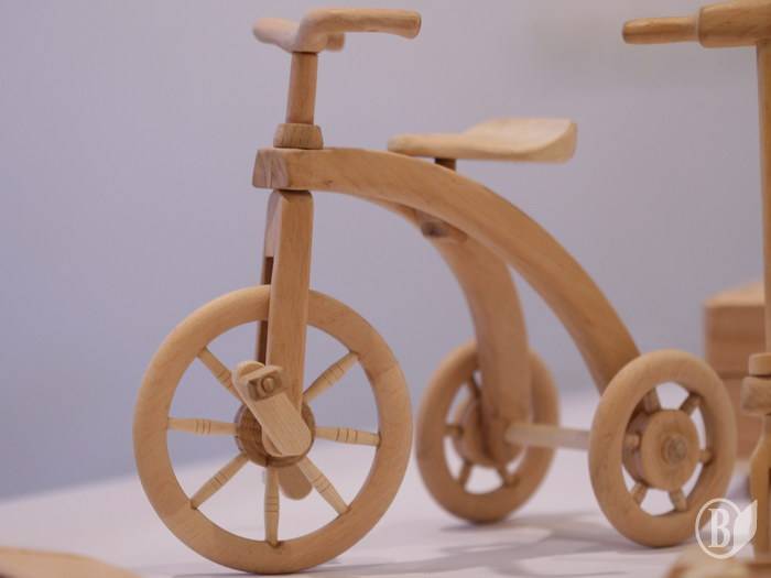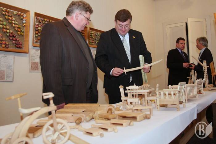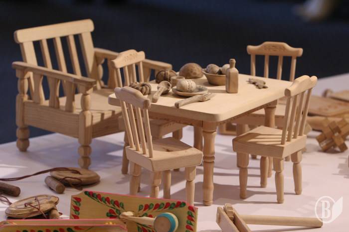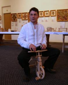 Кроме писанок в галерее представлены резные игрушки из дерева Сергея Святного. Они излучают добро и удивляют своим мастерством. Раньше нежинский мастер изготовлял посуду, лари и музыкальные инструменты. А затем сделал для своей детворы деревяний кран и автомобильчик.