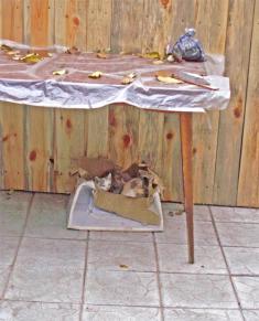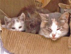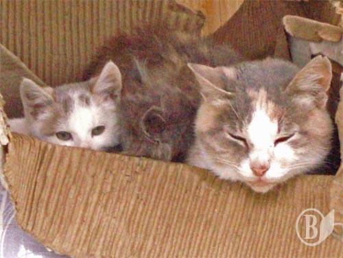 Для мурки-мамы, Дымка-сына и Пушинки-дочки наступили неприятные времена. Холодно стало! Доходит до заморозков. Пока ещё семью устраивает картонная коробка возле сарая.