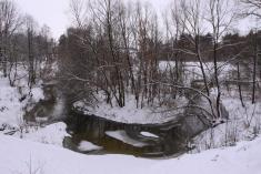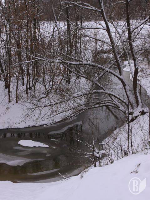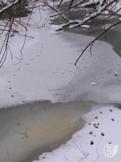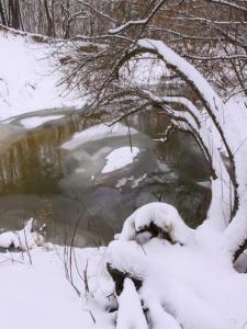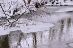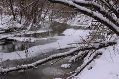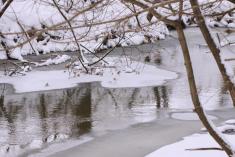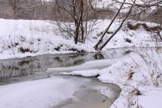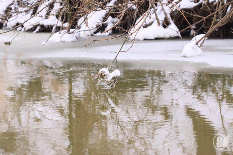 Зима. Воды реки Белоус в Старой Подусовке выплывают из-под льда и опять прячутся под ней.