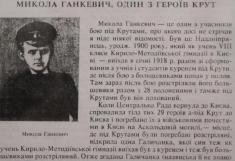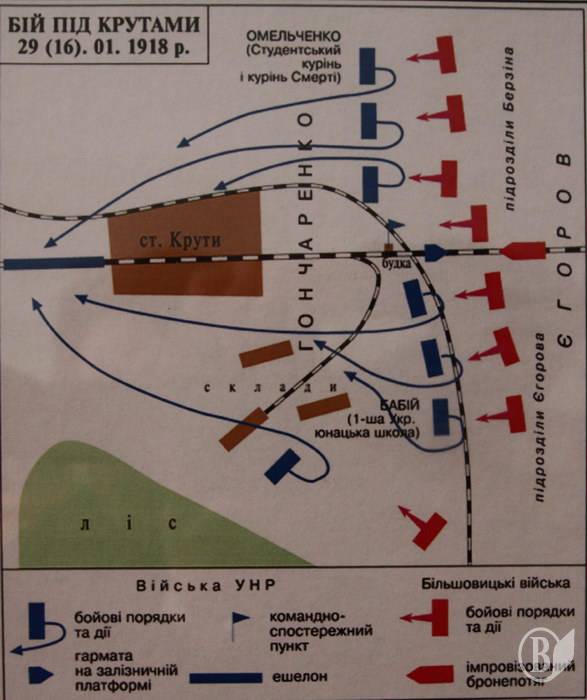 Основной раздел выставки касается непосредственно событий на станции Круты на Черниговщине 29(16) января 1918 года.