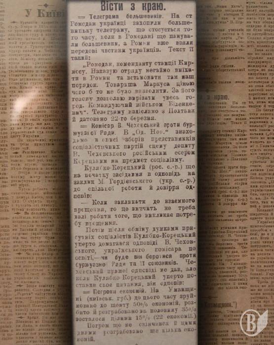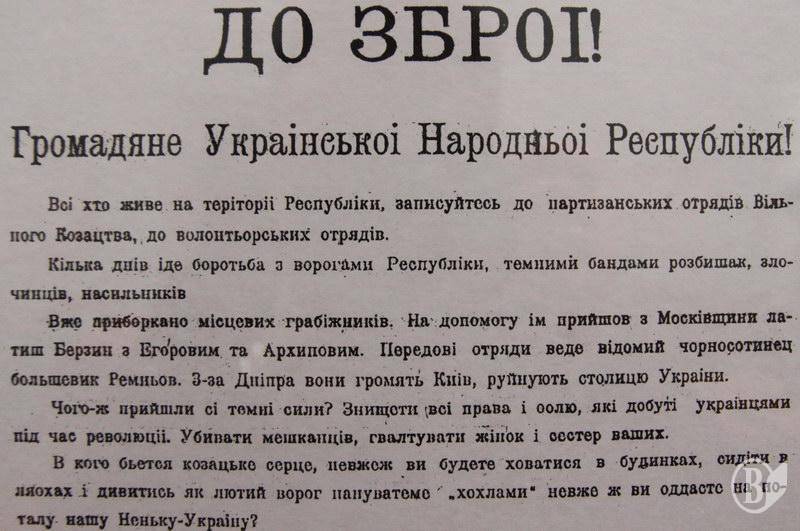 Завершает выставку раздел, где представлены документы Государственного архива Черниговской области о событиях Украинской революции 1917-1918 годов.