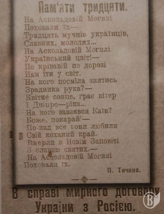 Второй раздел выставки посвящен чествованию памяти погибших под Крутами.