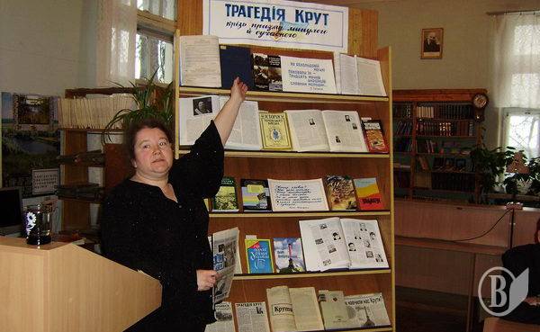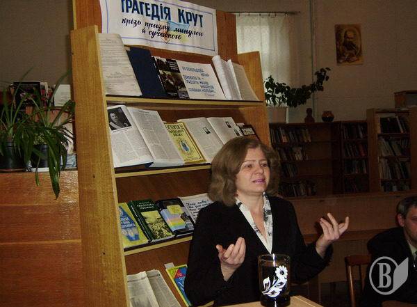 Після літературно-художньої композиції ліцеїсти поділилися своїми думками про легендарну подію. З оглядом літератури про Крути, яка є у бібліотеці, виступила завідувачка відділу обслуговування бібліотеки Ольга Гайова.