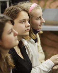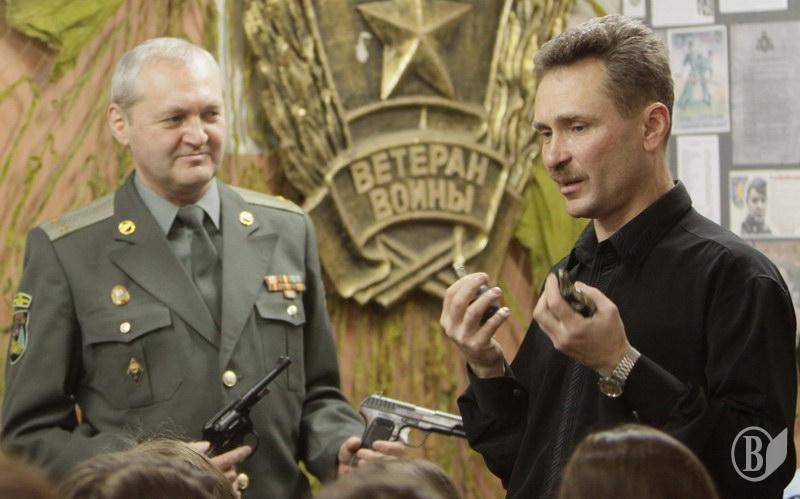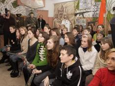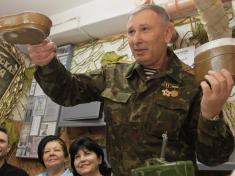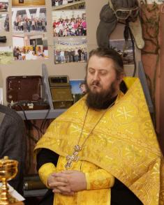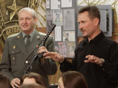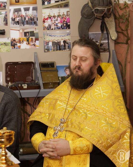 Здесь состоялись встречи школьников с участниками боевых действий. В частности, к школьникам пожаловал настоятель храма святителя Николая – отец Пётр.