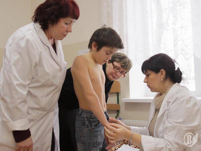 Ольга Богомолец проводит осмотр детей в Чернигове