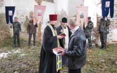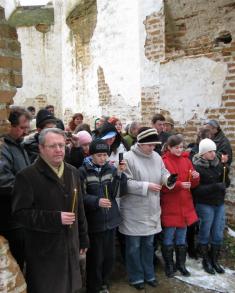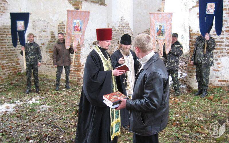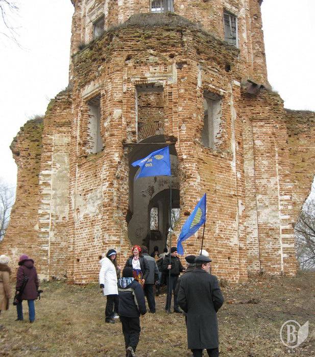 В день рождения Ивана Мазепы в полуразрушенной Покровский церкви села Дегтярёвка Новгород-Северского района активисты Украинской народной партии молились за светлую память украинского гетмана.