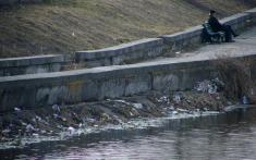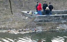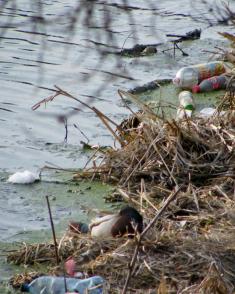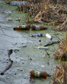 если ты не д*бил, тогда какого (... вставить слово по настроению и уровню воспитания) бросаеш бутылку прямо в воду? Или всётаки д*бил и не знаеш, что стеклов в воде не разтворяется ?