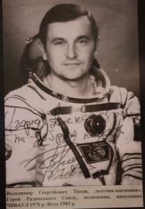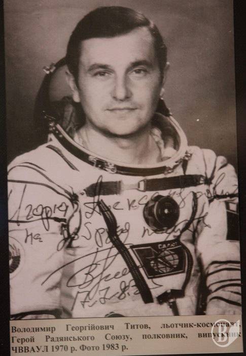 Николай Терентиевич Оврамец – заслуженный испытатель космической техники, председатель Черниговского совета ветеранов Байконура. Он предоставил наибольшее количество экспонатов, принял участие в открытии выставки и рассказал о буднях космодрома и лётчиков-космонавтов.