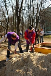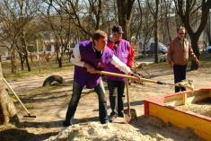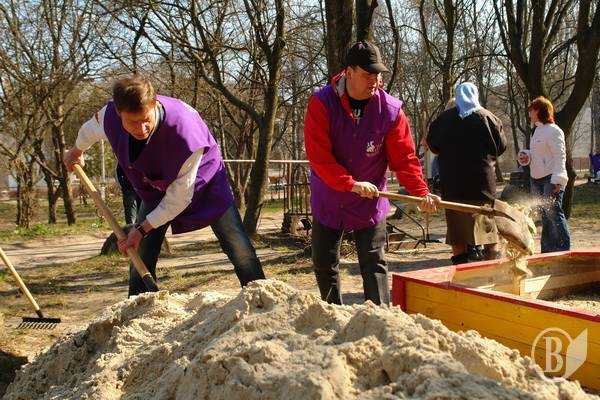 Народные артисты возглавили жюри конкурса на самый опрятный двор, объявленный организацией «За Чернигов». И уже в день субботника был объявлен первый победитель соревнования. Им стал двор по ул. Доценко, 13б, где начали устанавливать одну из трёх современных детских площадок.