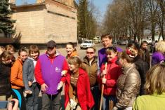 Поддержать черниговцев в весенней уборке накануне Пасхи приехали Народные артисты Украины Владимир Данилец и Владимир Мойсеенко.