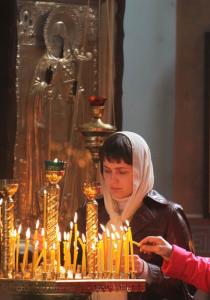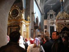 Везде было многолюдно, правилась служба, все с ветками ивы пришли в храму, чтобы их посвятить. Я общалась со многими людьми, но почти ни один из них не знает историю рождения этого праздника. Поэтому я решила спросить об этом у настоятеля храма Святителя Николая отца Петра.