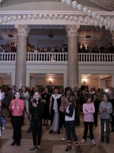 Людей собралось немало. Хотя не все были достаточно раскованы. Урок воплотили на практике преимущественно дети и молодёжь.