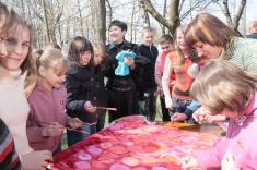Под руководством Алини Гроссу и художников-дизайнеров дети создали 2 необычных картины и раскрасили крынки.