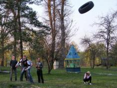 Конкурс наїзників. Перемагає самий повільний. Торкатися землі не можна: