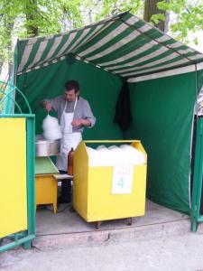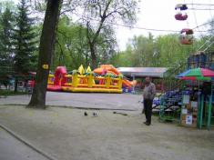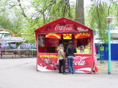 Та все ж таки дехто прийшов до парку і відпочиває. Хто катається на машинках, хто стріляє з гвинтівки, а дехто просто сидить на лавці, слухає радіо та п’є пиво.