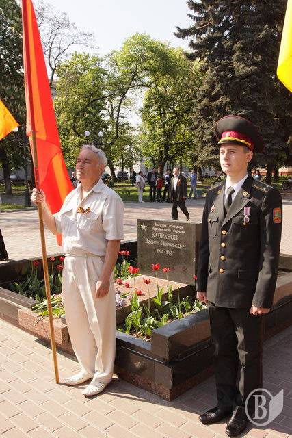Отмечание Дня Победы 9 мая в Чернигове началось с возложения цветов и венков к могилам погибших воинов в сквере им.Н.Попудренко.