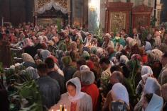 Храм был переполнен прихожанами, а на автопарковке около собора не было свободного места.