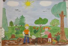 Кроме посадки деревьев и кустарников проводился конкурс на лучший рисунок и произведение на тему «Человек и лес».