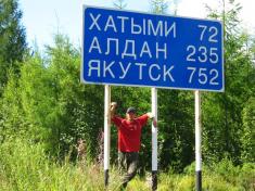 Їхав не тільки „з вітерцем”, а й з пилюкою. Та все ж краще погано їхати, ніж довго стояти. За дві години досягли якутського села Хатимі. Я відразу пригадав, що у 2006-у саме в Хатимі мені вперше у тій подорожі трапився „таксист”, який за підвіз хотів грошей. Цього разу історія повторилась – перед піднятою рукою зупинився „УАЗ-буханка” (улюблена машина якутів), заповнений людьми і пакунками. Я відразу збагнув, що це маршрутний автобус, який везе пасажирів у Якутськ, і звичайно, за гроші. А водій вже шукав очима місце в салоні для чергового пасажира з рюкзаком. Довелося вибачатись: